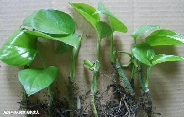 绿萝是一种比较好样的观叶植物,很多人都会在家里养上一盆,这样不仅能让家里变得更加有生机,而且还能很好的装点家里呢。在扦插的时候,在母株上面剪一段枝条下来,然后再剪成2~4公分的长度,最好是每个枝条上面都有节点,放在由蛭石、椰糠和珍珠岩混合的土壤里面,大概一个月的时间,就会长出新的叶子了呢。