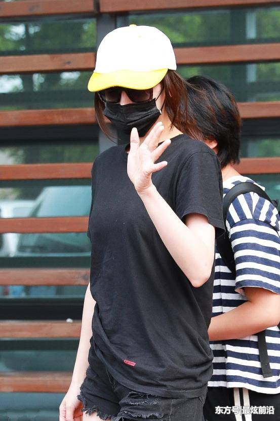 服装上,迪丽热巴选用的宽长版的黑Tee,这种版型的T恤衫对于迪丽热巴如此纤细的女子来说,是很正确的选择,可以凸显自己苗条的身姿。